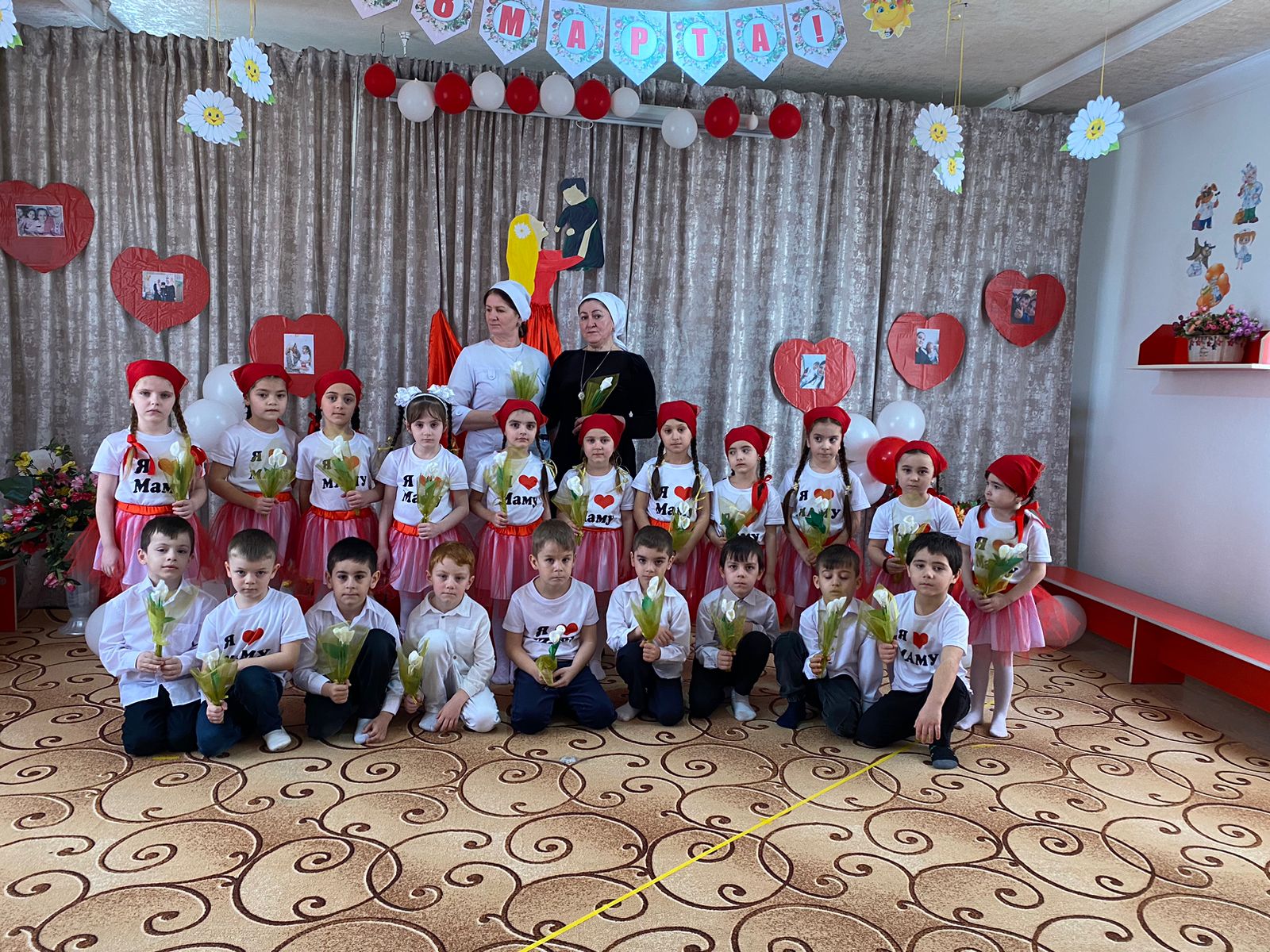 6 марта в нашем садике прошел праздник посвященный Дню 8 марта. На празднике присутствовало много гостей: бабушки, мамы, сотрудники детского сада. С большим старанием дети выступали для своих мам и бабушек.